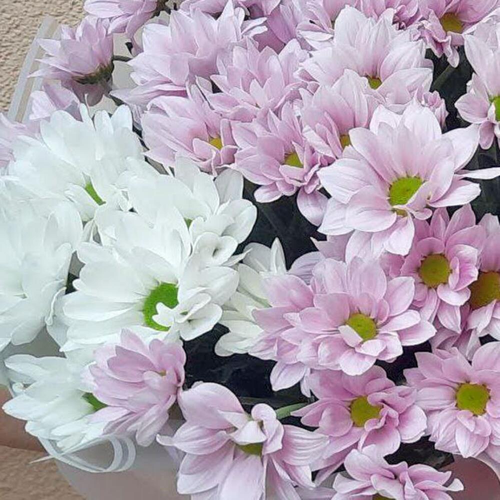 Букет из 7 белых и розовых хризантем