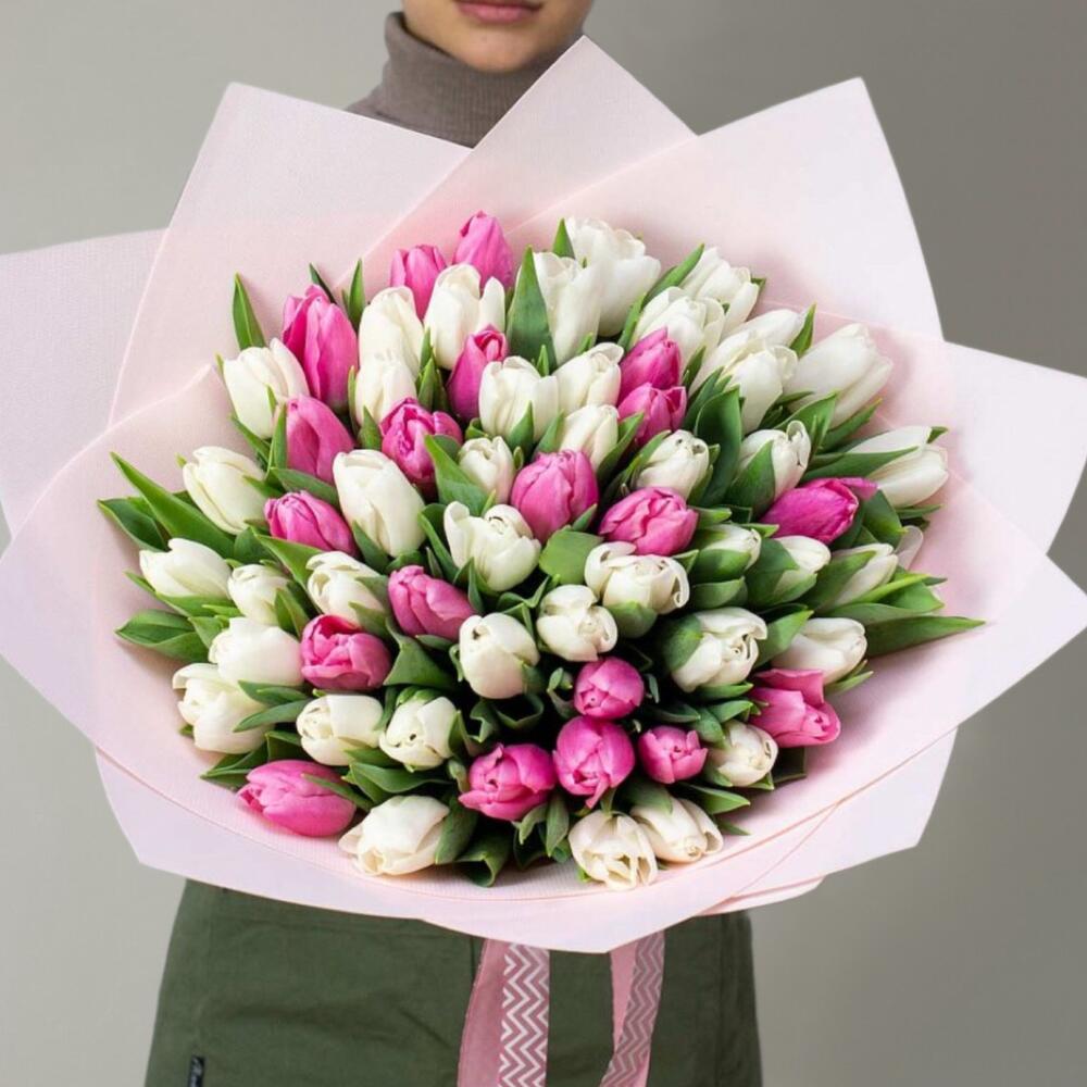 Нежный букет из белых и розовых тюльпанов – настоящее воплощение весны и прекрасный подарок на 8 марта